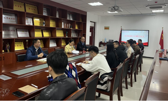 10月29日,tyc7111cc在301会议室举行班主任聘任仪式。学院领导班子全体成员、全体受聘班主任和辅导员代表参会。tyc7111cc党委副书记卫功兵主持聘任仪式。tyc7111cc党委书记钱敏、副院长崔汪卫上台为17名受聘班主任颁发了聘任证书。