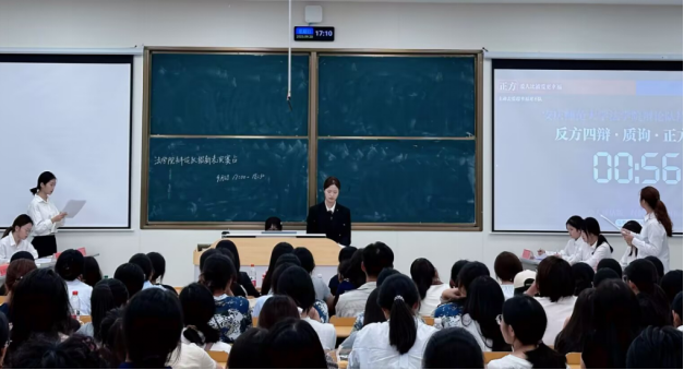 9月28日,由tyc7111cc学生会联合大学生青年法学会举办的辩论表演赛在教学楼C208教室如期举行,tyc7111cc200余名学生到场观摩。