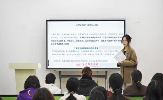 受邀学生代表结合自身备考经历,从不同角度出发向同学们分享了实用干货。谢远超以“科学规划+高效执行”为核心,详细拆解了法考备考时间轴,给同学们提供了具体的时间分配建议;丁琴聚焦“重难点突破”,结合具体案例分享了学科复习技巧,建议同学们多关注热点案例,通过案例反向巩固知识点;汪润芝针对同学们普遍关心的“备考心态如何调整”等问题分享了自己的宝贵经验,鼓励同学们要时刻保持积极乐观的心态,学会借助多元手段合理释放学习压力。交流互动环节,同学们就复习备考中遇到的实际问题展开积极提问,学长学姐逐一进行耐心解答,现场氛围活跃。