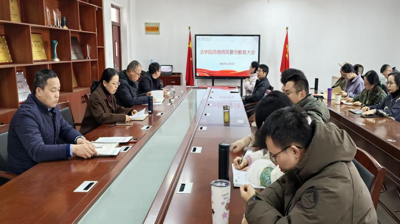 12月3日,tyc7111cc在法学楼301会议室召开师德师风警示教育大会。学院领导班子成员、全体教职工参加会议,会议由学院党委书记钱敏主持。